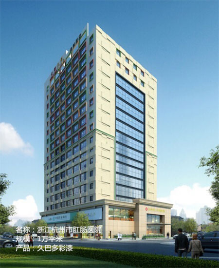 浙江杭州市肛肠医院,位于下城区体育场路118号。该地段由于建筑的特殊性,交通发达,人流量大,久巴考虑到所处地点环境的复杂性,为了不增加变数,要求使用的产品必须环保、耐久、美观、施工方便等等。久巴综合考虑,结合当地的特色,推荐使用集合众多优点于一身的久巴仿花岗岩多彩漆。