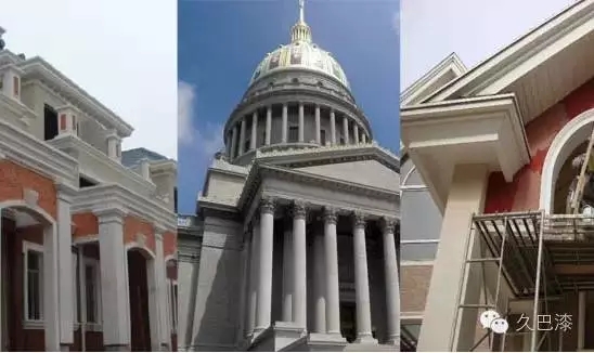 项目外墙主材选用久巴荷净真石漆,真石漆独有的质感和色彩能够最大化的体现古典主义风格,线条鲜明,凹凸有致,造型独特,颜色稳重大气,彰显尊荣华贵的内在气质。
