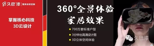久巴掌握核心科技,3D云设计,拥有700万套标准户型平台,3分钟出高清设计图,3D立体空间体验,改变传统涂料的导购模式,全面启动整体涂装定制模式,让业主提前看到家的模样。 久巴承诺免费上门、免费设计、免费打磨、免费遮蔽、免费施工监理、免费清理等6大费用全免,终身质保。