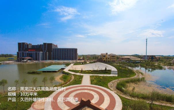 风景优美,气候宜人,为了保护黑鱼湖生态环境,度假村采用久巴弹性外墙漆和久巴荷净真石漆作为外墙的主材,力求减少对环境的损害。