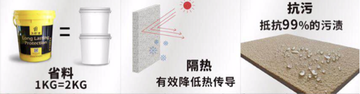 久巴5D洁净仿石漆的隔热有双重隔热功能,中涂层的中空陶瓷微珠结构,有效阻止热传导,表面纳米陶瓷涂料,有效反射热量,能让有效减少外部温度影响,长时间保持室内温度稳定。