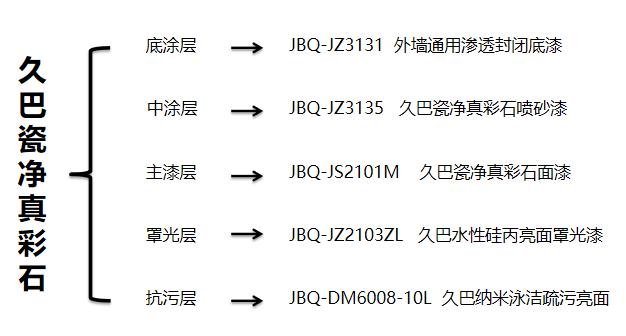 久巴瓷净真彩石喷砂中涂30KG/桶;久巴瓷净真彩石面漆20KG/桶 |